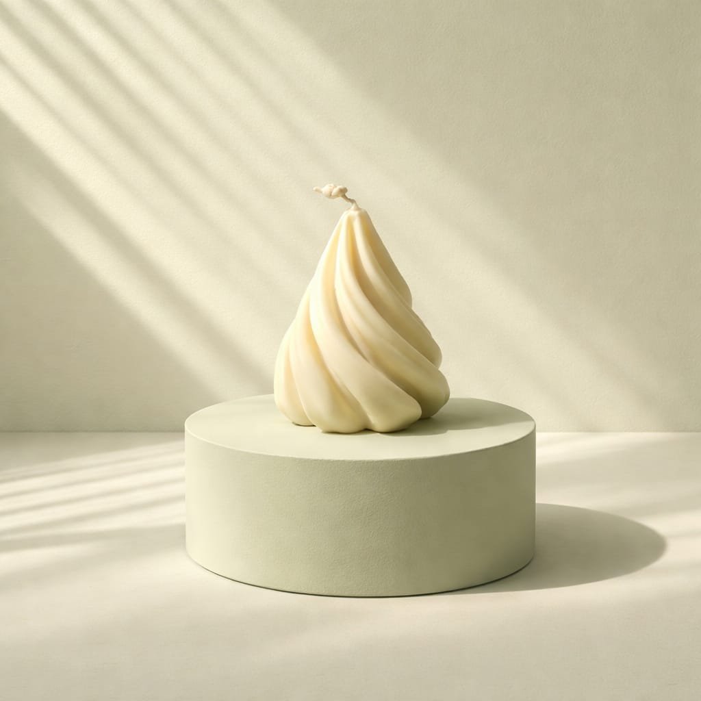 Spiral formda tasarlanmış, el yapımı doğal soya mumu.