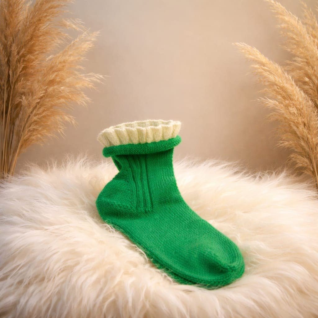El Yapımı Yün Çorap Yeşil 38-40 Numara | Kışlık Sıcak Çorap | %75 Yün Doğal Örgü Çorap | Kadın Erkek