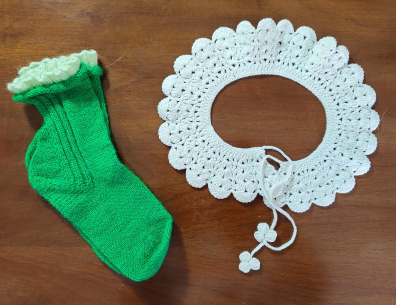 El Yapımı Hediye Seti 28 | Yün Çorap & Örgü Yaka Aksesuar | 38-40 Numara